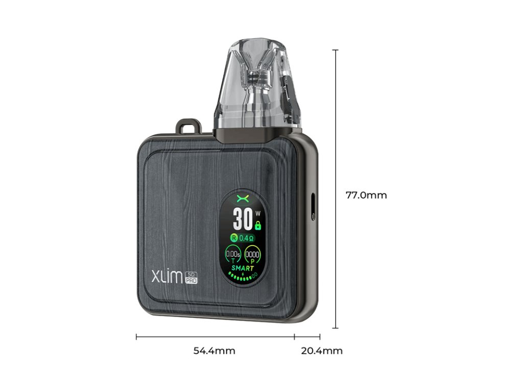 Jednou z hlavních předností tohoto zařízení je jeho ergonomický tvar a povrchová úprava z černé kůže, která dodává nejen luxusní vzhled, ale také příjemný pocit při držení. OXVA Xlim SQ PRO podporuje různé režimy výkonu a je kompatibilní s širokou škálou žhavicích hlav, což umožňuje přizpůsobit zážitek z vapování přesně podle vašich preferencí. Integrovaný OLED displej poskytuje přehledné informace o aktuálním nastavení a stavu baterie.