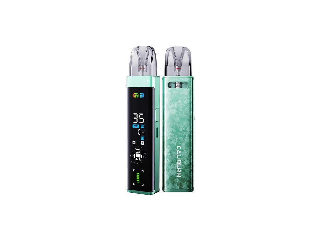 Elektronická cigareta Uwell CALIBURN G3 PRO 1000mAh Frozen green je moderní zařízení určené pro uživatele, kteří hledají stylové, výkonné a spolehlivé řešení pro vapování. Díky svému elegantnímu designu s zmrzlým zelený povrchem nabízí nejen estetický zážitek, ale také pohodlné držení a odolnost vůči každodennímu opotřebení.