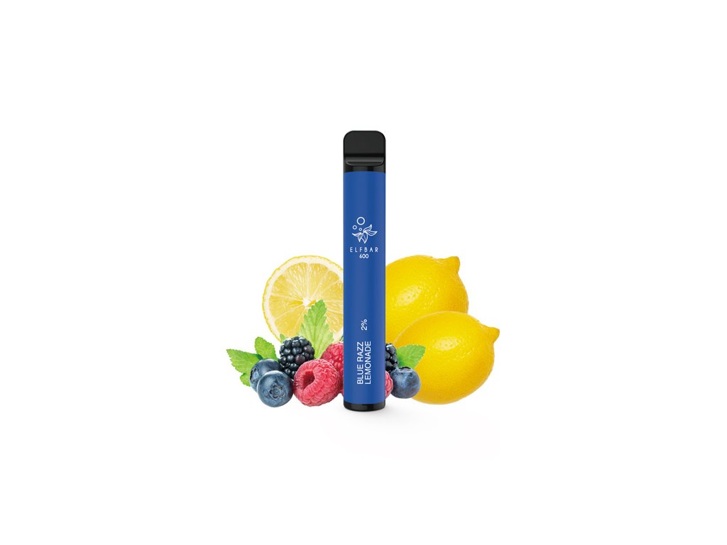 Jednorázová e-cigareta Elfbar 600 s kapacitou až 600 potahů. - Obsahuje 20 mg/ml nikotinové soli a příchuť Blue Razz Lemonade. - Zařízení je přednaplněné, připravené k okamžitému použití, bez nutnosti nabíjení či plnění.