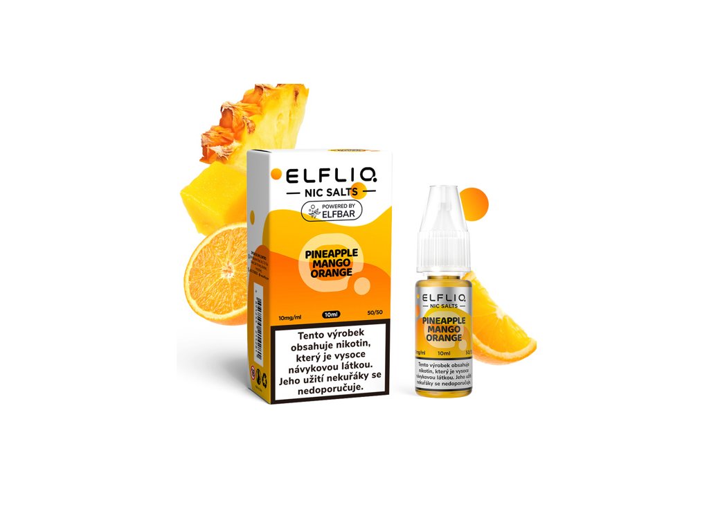 Elfliq Pineapple Mango Orange 10 je liquid určený pro všechna zařízení typu vape. Nabízí vyváženou kombinaci chutí ananasu, manga a pomeranče. Ideální volba pro milovníky ovocných příchutí s vysokou kvalitou zpracování.