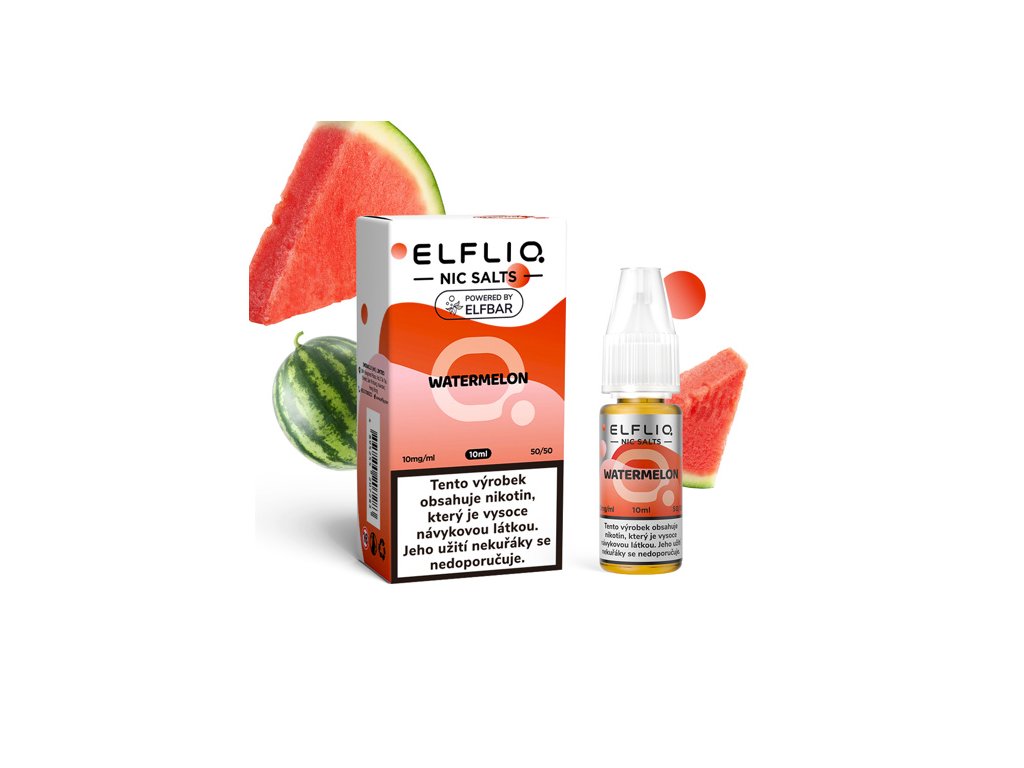 Elfliq Watermelon 10mg je nikotinová e-liquid náplň určená pro použití v elektronických cigaretách. Obsahuje 10 mg/ml nikotinu ve formě nikotinové soli, což zajišťuje rychlejší absorpci nikotinu a hladší inhalaci. Produkt je formulován s příchutí vodního melounu, která poskytuje osvěžující a autentický chuťový zážitek. Náplň je kompatibilní s většinou zařízení typu pod systém a splňuje požadavky na kvalitu a bezpečnost dle platných norem.