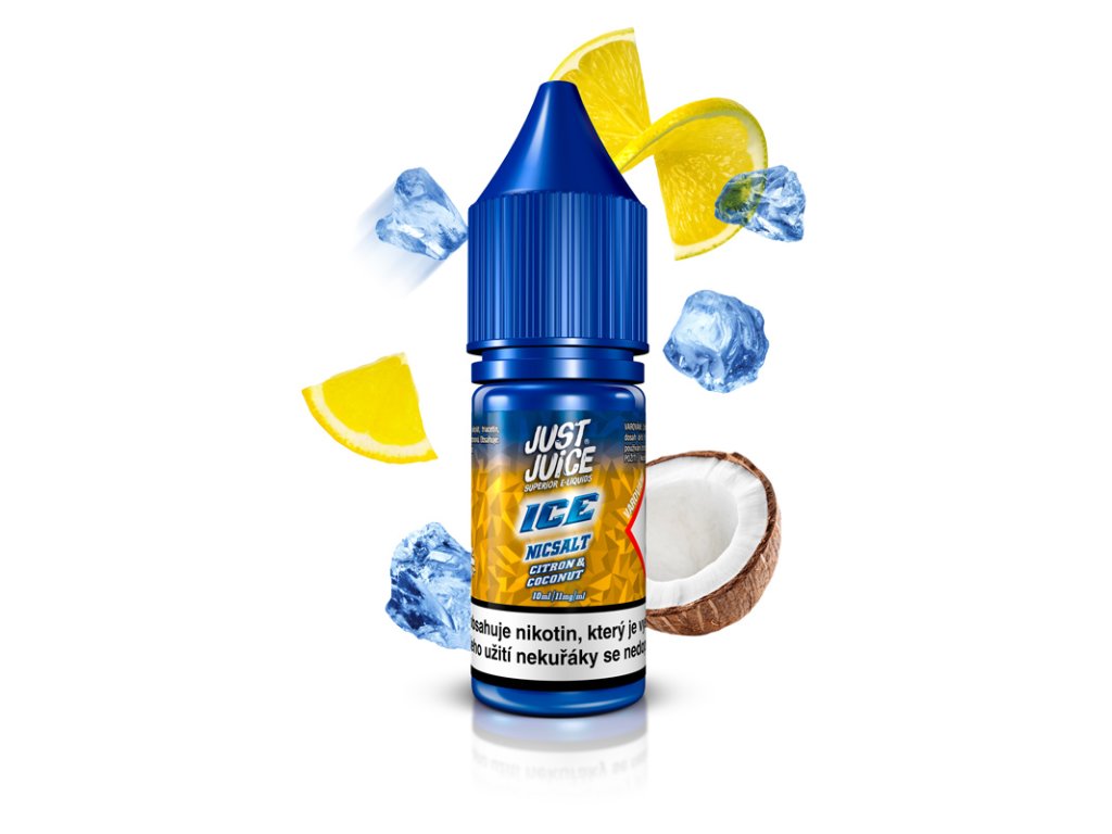Just Juice Salt ICE citron & coconut 11mg je nikotinová sůl s obsahem nikotinu 11 mg/ml, která kombinuje osvěžující chuť citronu a exotického kokosu s chladivým efektem. Obsah balení je 10 ml a splňuje požadavky TPD regulace.