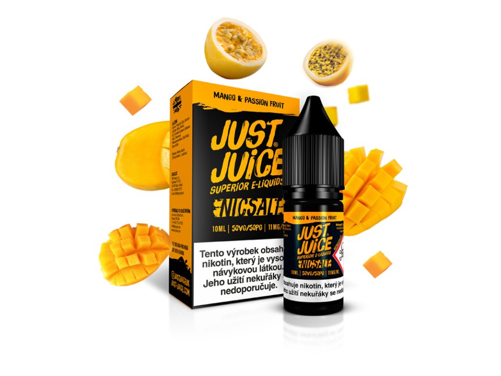 Just Juice Salt Mango & Passion Fruit 11mg je nikotinová sůl s intenzivní tropickou příchutí manga a marakuji. Obsah nikotinu činí 11 mg, což zajišťuje rychlé vstřebávání a uspokojení nikotinových potřeb.