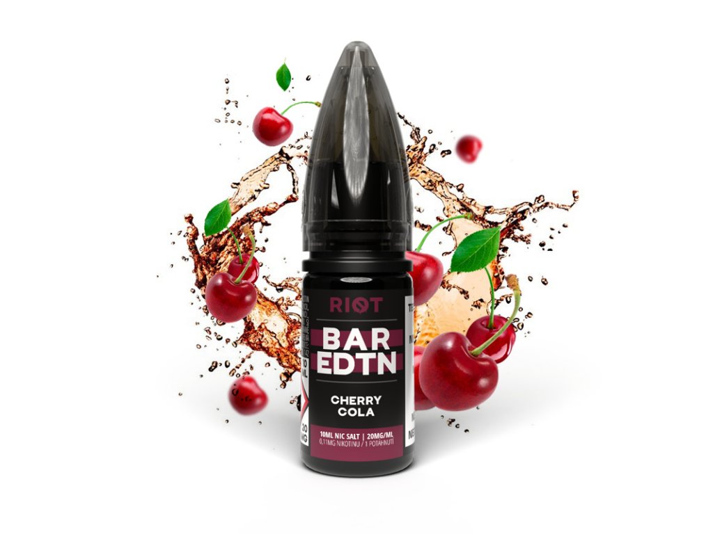 Riot Bar EDTN Cherry Cola 10mg je liquid s příchutí třešňové koly. Obsah nikotinu 10 mg je ideální pro střední intenzitu vapování. Liquid je určen pro všechny typy zařízení na vapování.